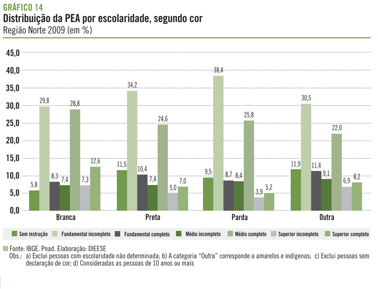 G14 Distribuição da PEA por escolaridade, segundo cor - Região Norte