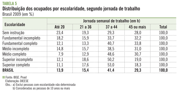 T5 Distribuição dos ocupados por escolaridade, segundo jornada de trabalho - Brasil