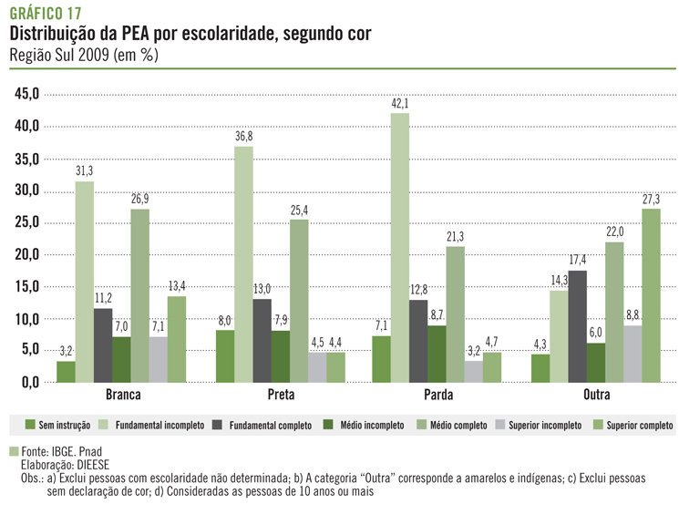 G17 Distribuição da PEA por escolaridade, segundo cor - Região Sul
