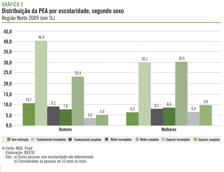 G2 Distribuição da PEA por escolaridade, segundo sexo - Região Norte