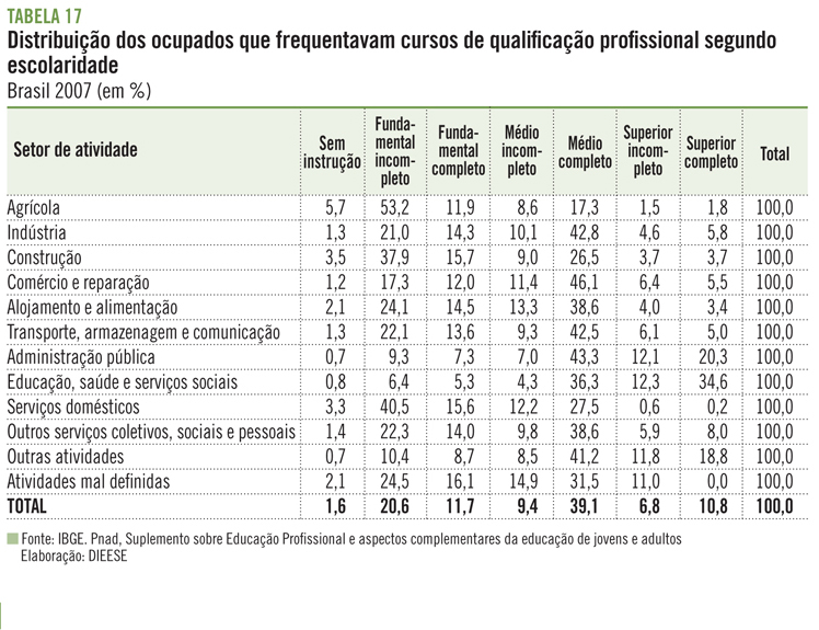 T17 Distribuição dos ocupados que frequentavam cursos de qualificação profissional segundo escolaridade - Brasil