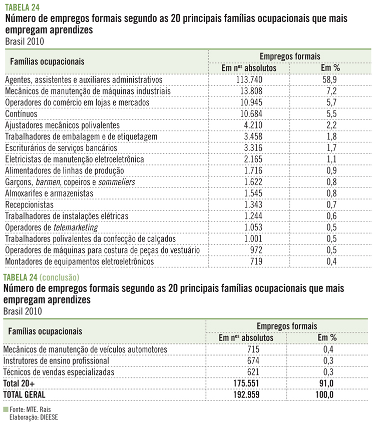 T24 Número de empregos formais segundo as 20 principais famílias ocupacionais que mais empregam aprendizes