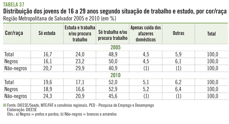 T37 Distribuição dos jovens de 16 a 29 anos segundo situação de trabalho e estudo, por cor/raça - Região Metropolitana de Salvador