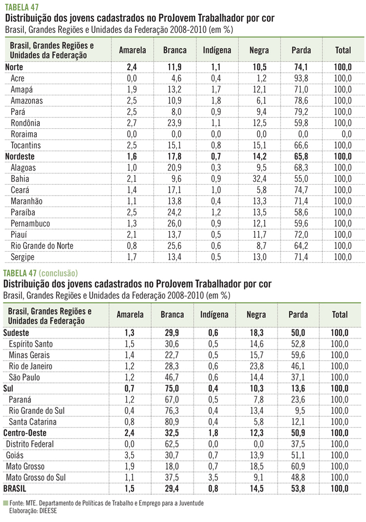 T47 Distribuição dos jovens cadastrados no ProJovem Trabalhador por cor