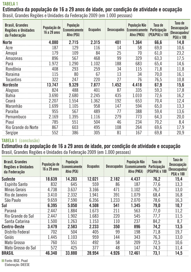 T1 Estimativa da população de 16 a 29 anos de idade, por condição de atividade e ocupação
