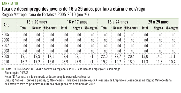 T16 Taxa de desemprego dos jovens de 16 a 29 anos, por faixa etária e cor/raça - RM Fortaleza