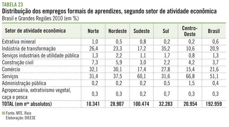 T23 Distribuição dos empregos formais de aprendizes, segundo setor de atividade econômica