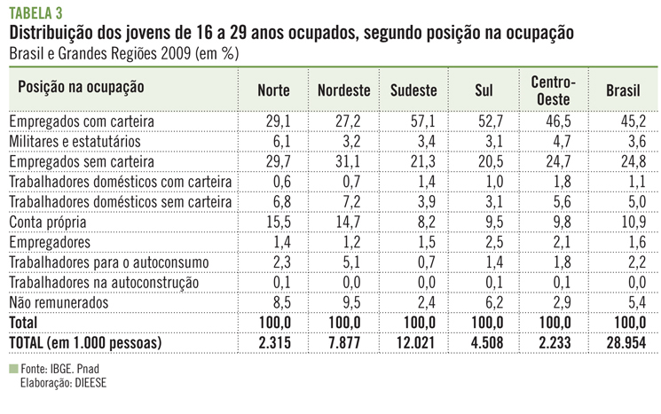 T3 Distribuição dos jovens de 16 a 29 anos ocupados, segundo posição na ocupação