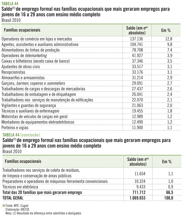 T44 Saldo de emprego formal nas famílias ocupacionais que mais geraram empregos para jovens de 16 a 29 anos com ensino médio completo