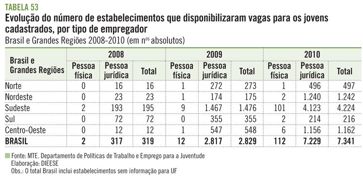 T53 Evolução do número de estabelecimentos que disponibilizaram vagas para os jovens cadastrados, por tipo de empregador