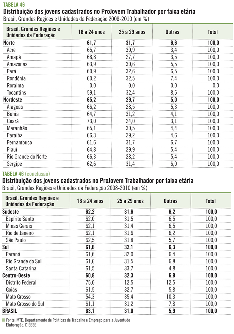 T46 Distribuição dos jovens cadastrados no ProJovem Trabalhador por faixa etária