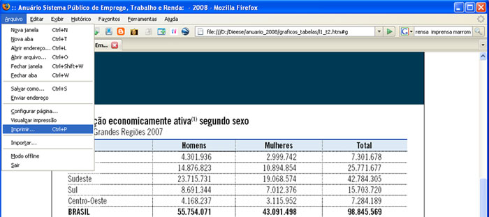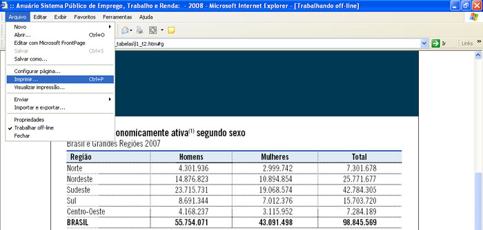 impressão desejadas ou usando o atalho de teclas (Ctrl+P).