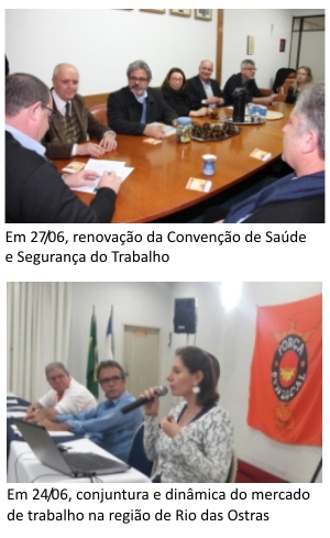 - Em 24/06, a supervisora do Escritório Regional RJ, Jéssica Naime, falou sobre conjuntura e dinâmica do mercado de trabalho na região de Rio das Ostras, no segundo de cinco eventos que a Força Sindical do Rio de Janeiro está organizando para discutir conjuntura e emprego no estado. A atividade foi realizada em Rio das Ostras (foto 2).