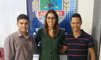 - Em 14/02, Andreia fez apresentação sobre a atuação do DIEESE junto ao movimento sindical para a Associação dos Praças da Polícia e do Corpo de Bombeiros Militar de Mato Grosso do Sul (Aspra). A atividade aconteceu em Campo Grande e contou com a participação do presidente da entidade, Rafael Ribeiro Soares, e do diretor Neusivan Fonseca Nascimento (foto).