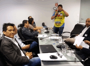O supervisor técnico do Escritório Regional AM, Inaldo Seixas, e o técnico Gustavo Teixeira, da Subseção da Federação Nacional dos Urbanitários (FNU), participaram da reunião do Fórum do Setor Elétrico, da Comissão de Geodiversidade, Recursos Hídricos, Minas, Gás e Energia da Assembleia Legislativa do Amazonas (Aleam). O encontro aconteceu em Manaus.