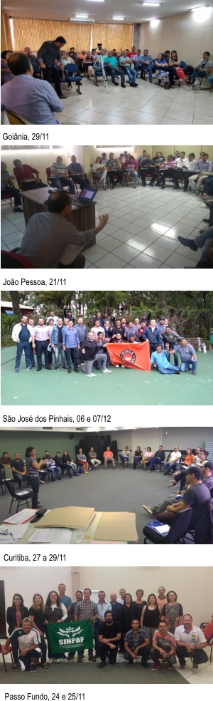 - Em 24 e 25/11, a Escola DIEESE de Ciências do Trabalho realizou o curso História do movimento sindical para o Sindicato Nacional dos Trabalhadores de Pesquisa e Desenvolvimento Agropecuário (Sinpaf), em Passo Fundo.