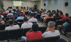 Previdência Social. A palestra fez parte da programação da plenária da CTB, em Goiânia.